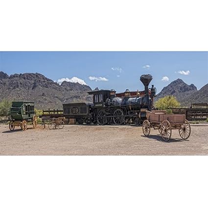 Laeacco Wild West Theme 7x3ft Vinyl Photography Background Antique Steam Train Wagon Bicycle Cart Scenic Backdrop Child Adult Cowboy Portrait Shoot